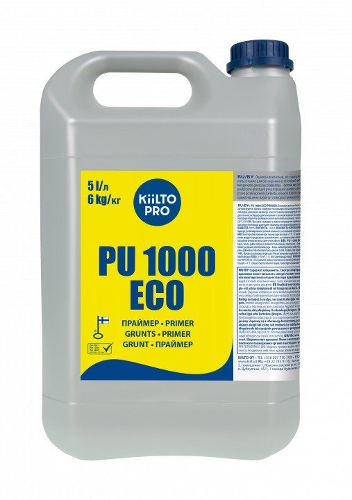 „Kiilto PU 1000 ECO“ yra be tirpiklių, nuo drėgmės kietėjantis vieno komponento gruntas skirtas betono ir išlyginamųjų mišinių paviršiams, naudojant „Kiilto“ ne vandens pagrindo parketo klijus. Galima naudoti kaip drėgmės barjerą pagrindo likutinei drėgmei blokuoti iki 90 % RH arba 3,5 CM %. Tinka šildomoms grindims